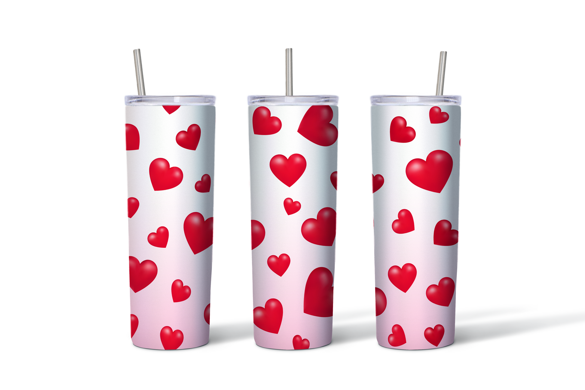 Large Red Hearts Valentine Ombre Tumbler – 20 oz