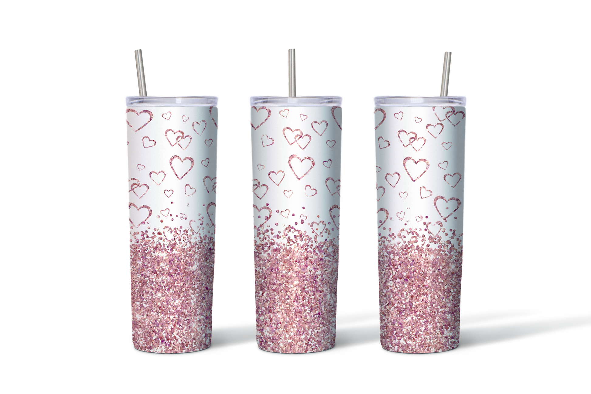 Pink Glitter Hearts Tumbler - 20 oz. Stainless Steel