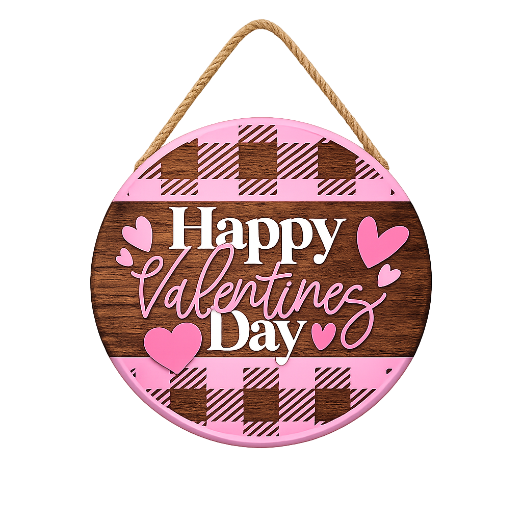 Add a sweet pop of Valentine cheer to your home with this adorable Happy Valentine’s Day round door hanger! Featuring a fun pink plaid design, layered heart accents, and bold lettering, this sign is the perfect way to welcome love season in a warm and playful way.