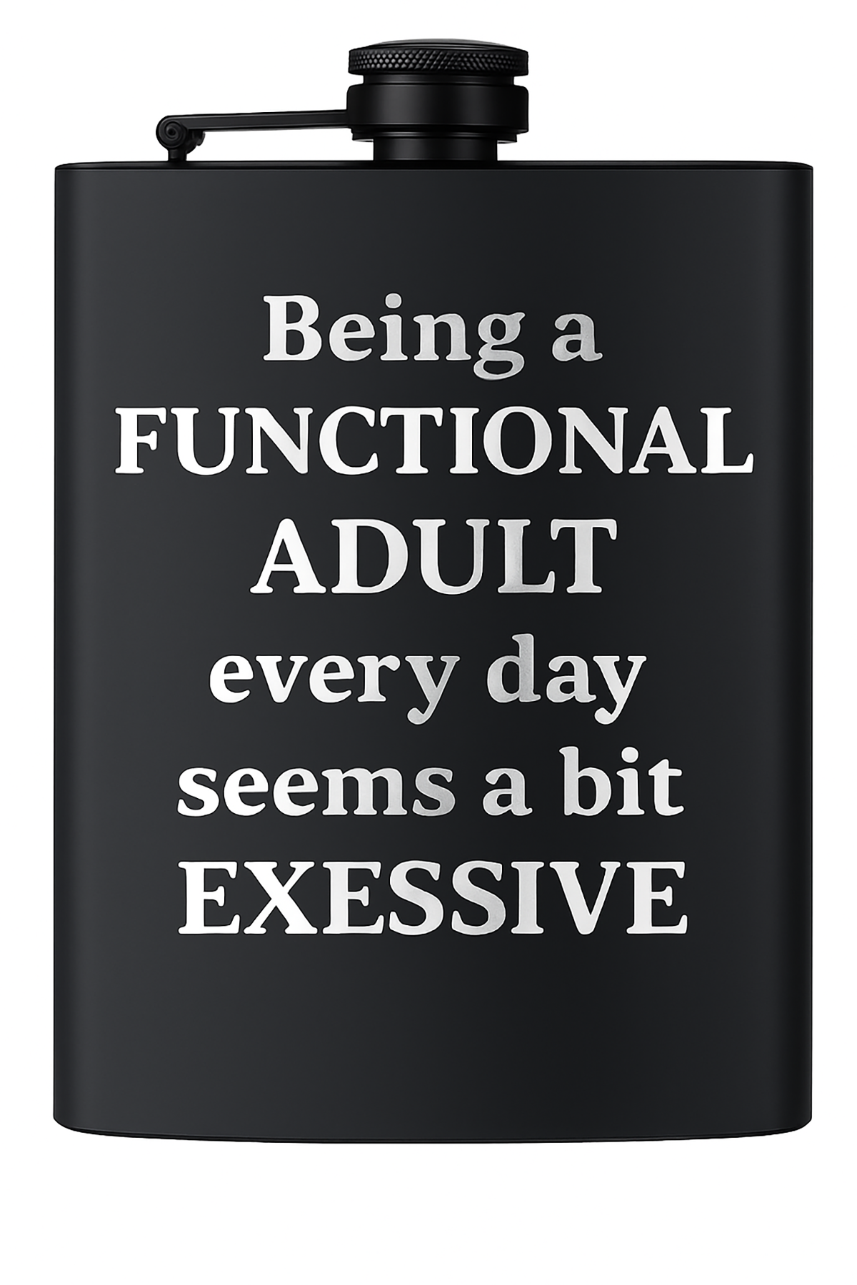 Crafted from high-quality stainless steel, this flask is lightweight yet sturdy, making it perfect for concerts, weddings, camping trips, bachelor/bachelorette parties, or a good laugh with friends. The matte black coating paired with silver engraving gives it a modern, elevated feel—whether the message is funny, bold, or a little sarcastic.