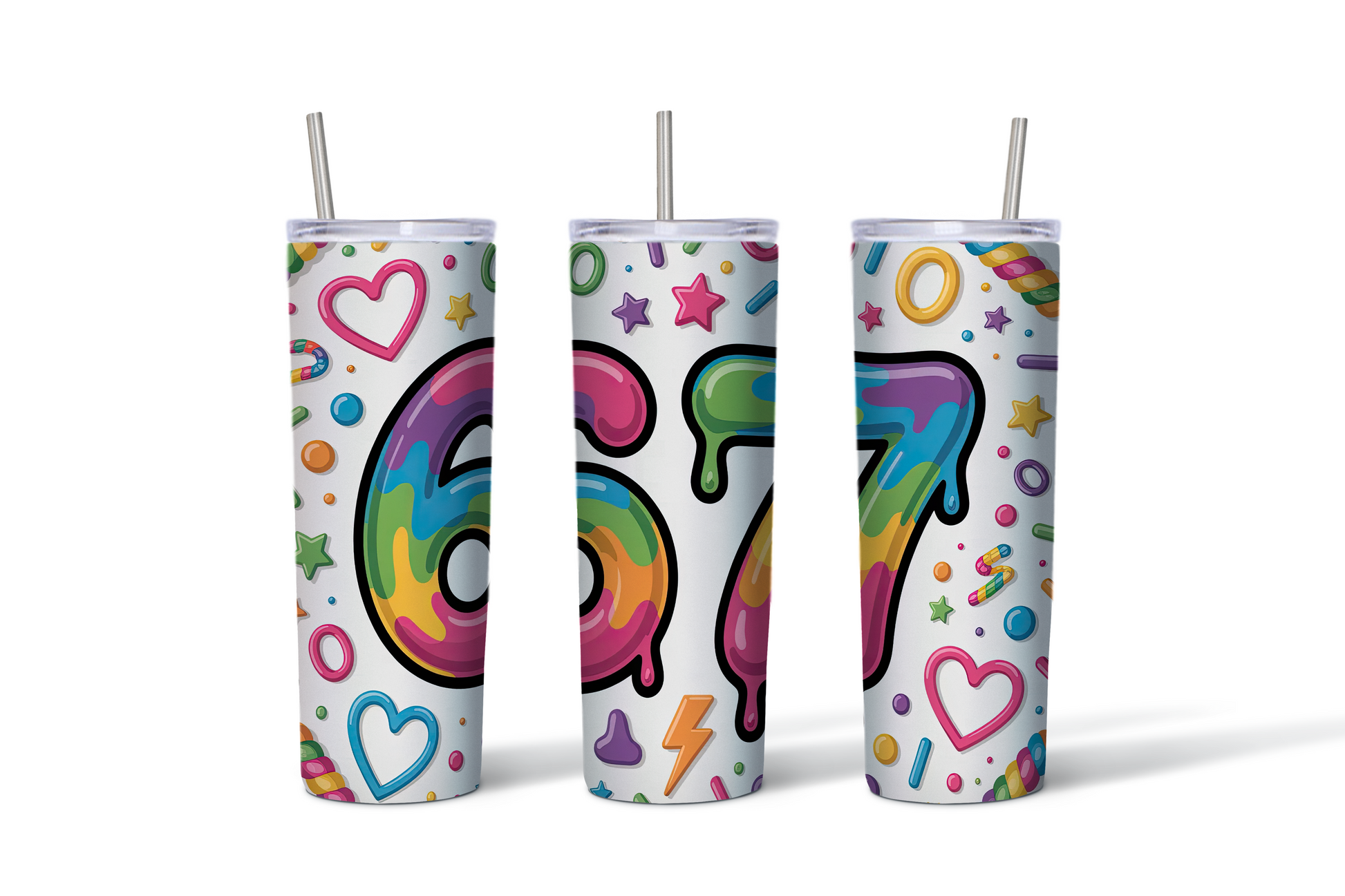 Celebrate Valentine’s Day with a little extra fun + flair! Our Valentine’s Day “67” Tumbler features a bold, colorful drip-style “67” design surrounded by playful hearts, stars, and candy-inspired details—perfect for anyone who loves cute gifts with a hint of attitude.